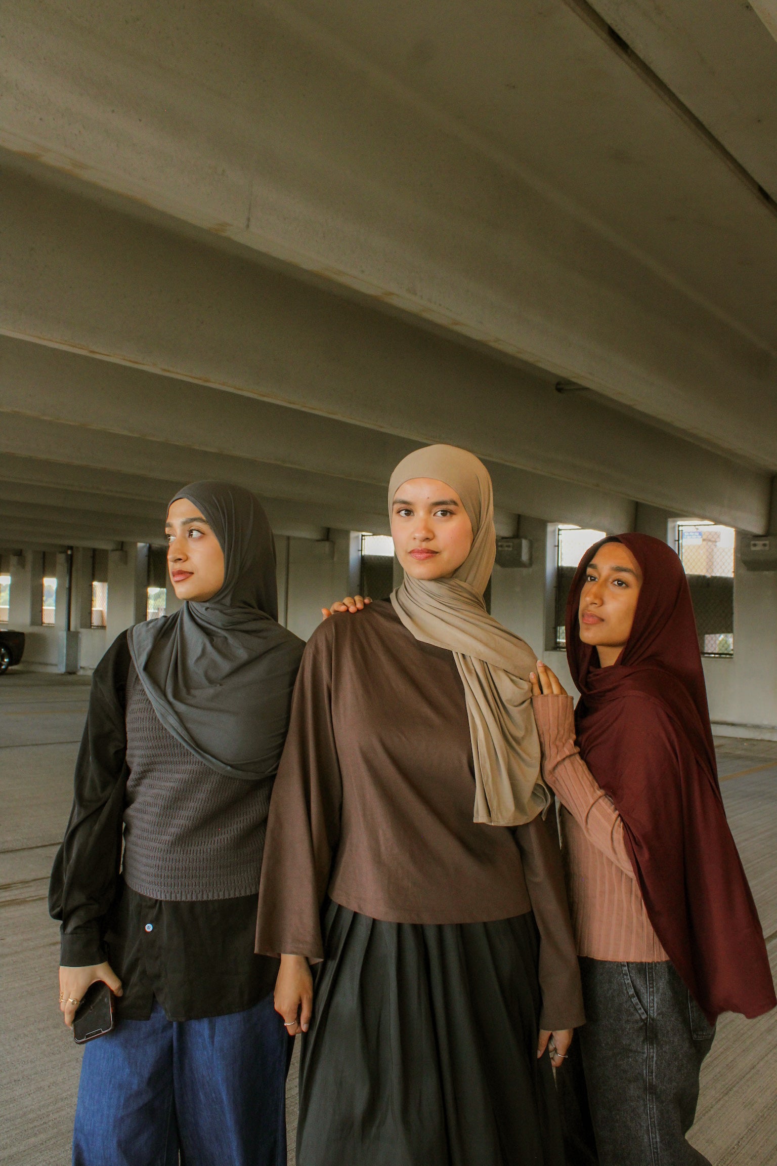 The material everyone warned you about. Introducing our weightless, breathable and anything but basic scarves. Wear it your way.